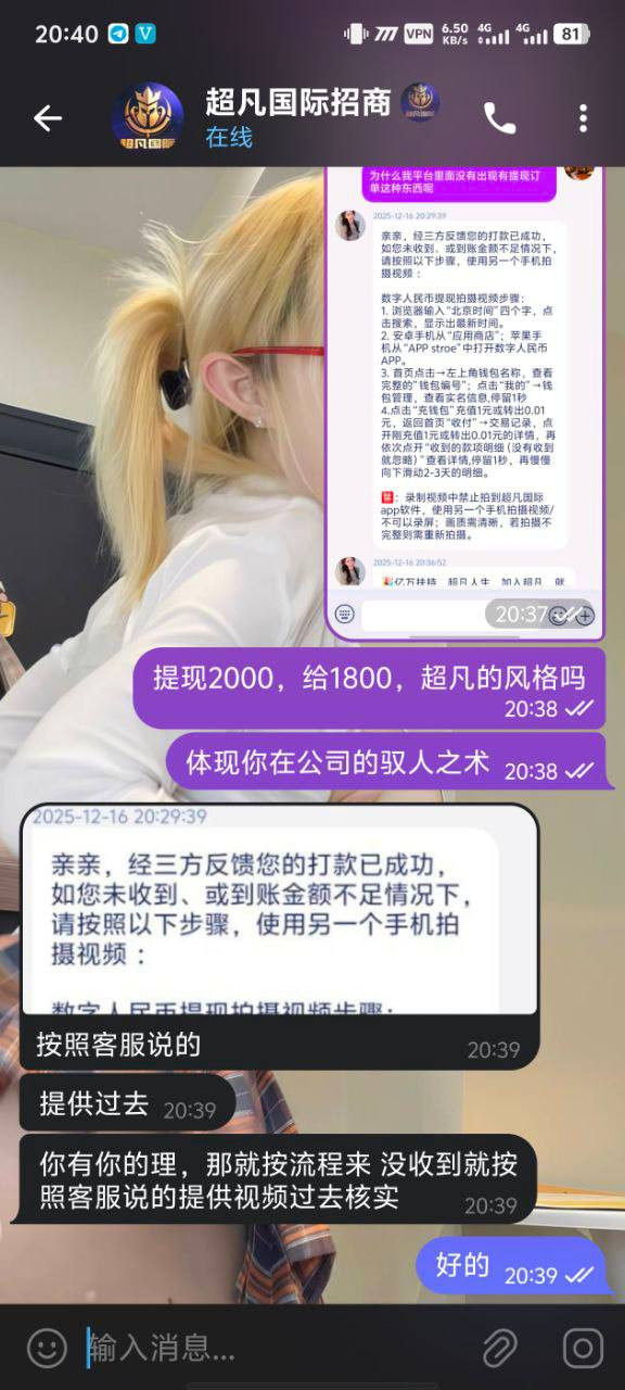 用户要求客服提供录屏或视频打款证据,半个小时过去仍拿不出真实证明,平台客服只会重复同一句话,招商客服则直接不回复。这是典型的PS游戏,赢钱后故意不出款。